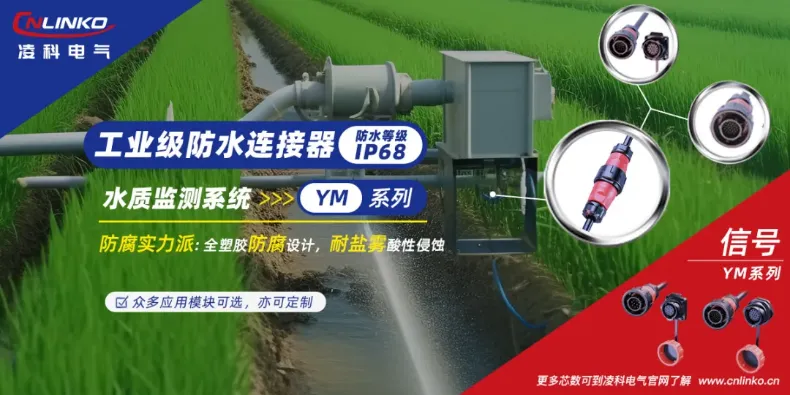 凌科的新增卡扣模块结构设计的全新升级版的YM24系列多芯数工业级连接器,凭借IP68级旗舰级防水,防腐蚀,低温升传输、牢靠耐用等优势,成为水质监测系统适合的连接方案产品。目前这款产品正在水质监测系统等领域应用。
