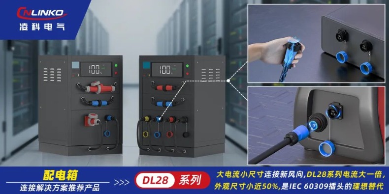 目前凌科DL28系列工业级大电流连接器正逐渐应用于各类配电系统。它相较于IEC60309插头,外观尺寸小一半的独特优势,更是备受推崇。不仅解决了配电箱连接器紧凑布线的诉求,而且还更安全,更牢靠、更稳定。