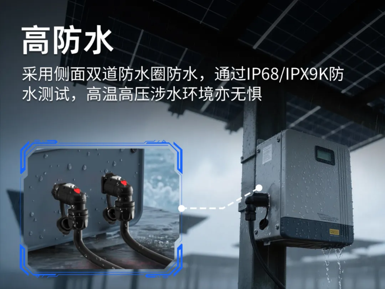 光伏设备长期处于户外工作状态,面临诸多复杂因素挑战,因而配套连接器需满足多重刚性要求: