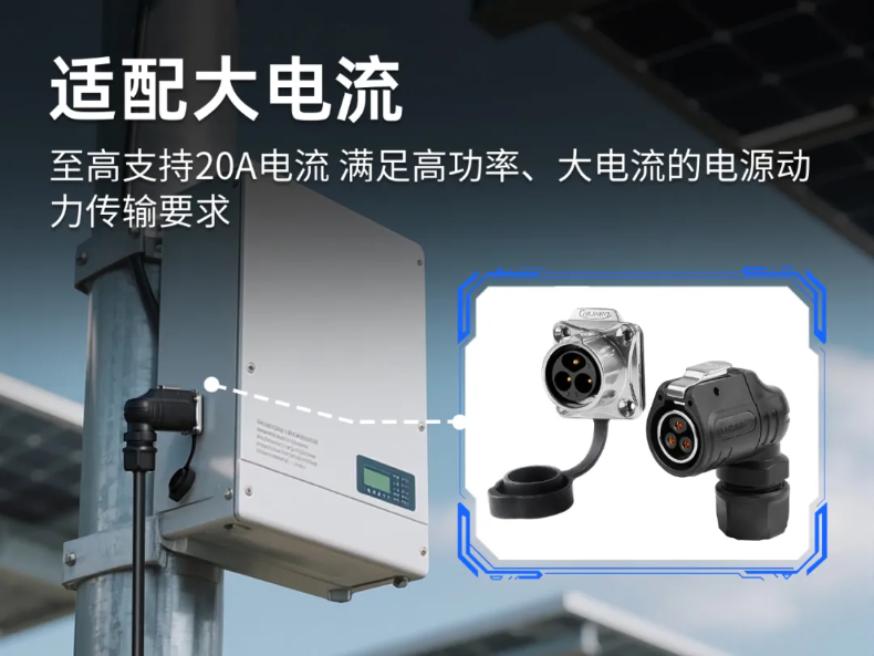 光伏发电的电能通常要高效外输,因而工业连接器要具备承载高电流传导的能力,以实现大电流传输,且要保持低而稳定的接触电阻。