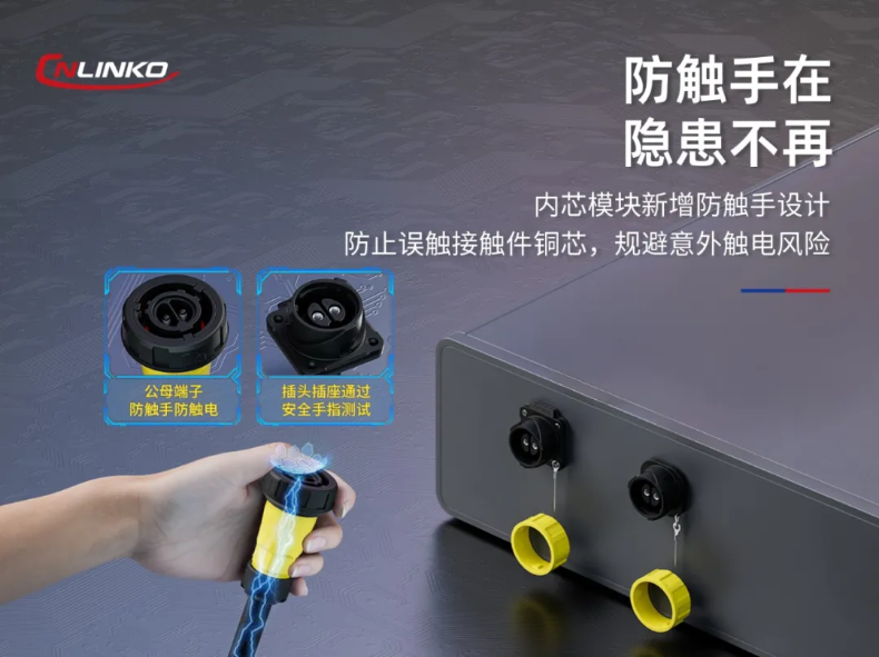 2、公母端子物理防触电结构,有效防止手指或工具意外插入带电部位,杜绝误触带电部件的风险。