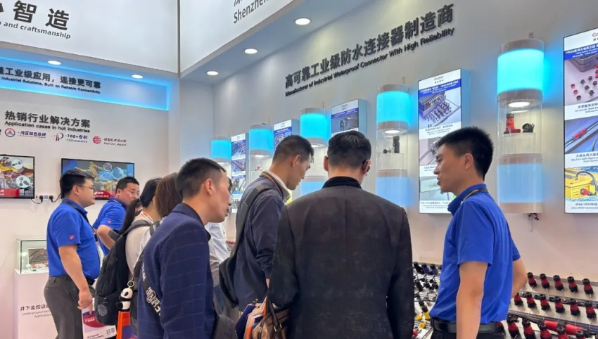 展会首日,凌科展台的流量如初夏一样炽烈,一批批来自国内以及世界各地的参观者频频前来打卡。他们纷纷在凌科展位区驻留,细细观看展区陈列的各种精工打造的连接器产品,并不时与凌科工作人员互动交流。