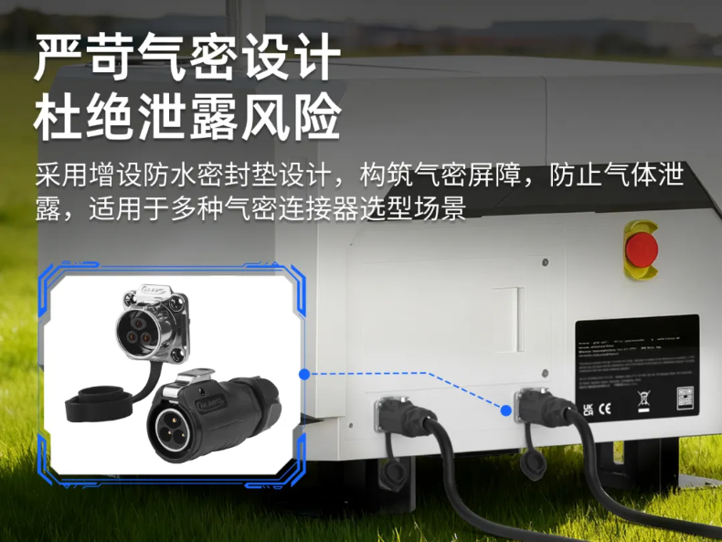 凌科LP20型气密性连接器,采用了按扣直插式连接方式,这一设计让断连连接器变得极简极快。单手插拔,简单好用,快如风驰。