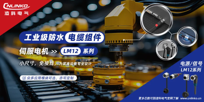 凌科LM12连接器现已在伺服电机产品上得到广泛应用。通过用户的反馈,我们知道凌科该款产品精准匹配了伺服电机的核心诉求,确保了在工业等复杂环境下实现安全、高效与稳定的电源和信号传输的目的,成为伺服电机应用全新选择。