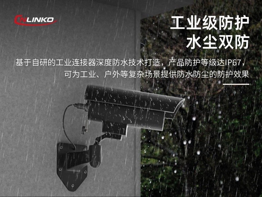 作为一款工业级连接器,其防水防尘性能自然不能落下风。该款产品工业级标准打造,自研防水技术加持,产品防护等级达IP67,是工业、户外等复杂场景下非常可靠与安全的一款数据连接器。