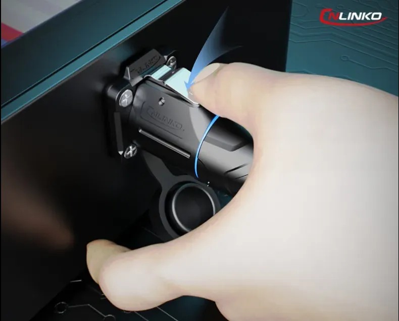 凌科这款Type-C工业连接器采用按扣式锁紧连接结构设计,可实现单手一键快速插拔,连接分离更快捷。在露天展台,户外景点等户外场景,会存在频繁的拆装与转场,操作时效性和便捷性至为重要。凌科这款连接器一键快速插拔的功能,就能让投影仪操作者在现场操作起来更高效更节时,体验感更佳。
