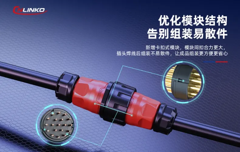 水质监测系统的前端部分,在恶劣环境的长期使用中连接器保持持久耐用和可靠显得很重要。上述YM24升级款连接器,新增了卡扣式模块,模块间扣合力更大,组装后不易散件,更结实耐用;同时在插头插座的连接结构上采用了螺旋卡口式连接设计,连接更稳固,因而在长时间不间断的连接使用下,该款连接器能保障更可靠、更耐用。