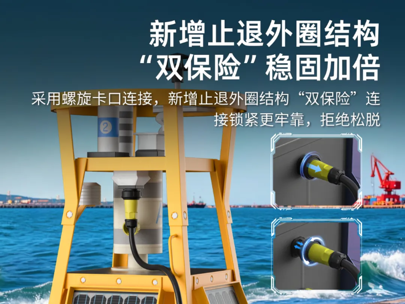 海洋环境振动源复杂(如持续浪击、强风冲击等),远超陆地场景,因而海洋环境监测设备选用连接器非常看重连接锁定的稳固性。
