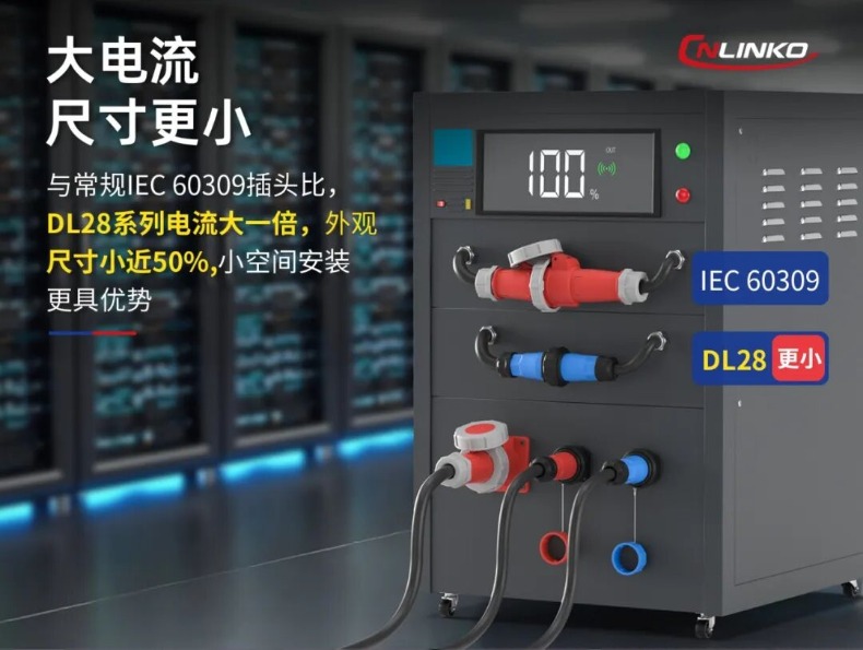 凌科DL28系列大电流连接器,相比IEC60309插头,其尺寸减少近50%,而电流承载力却提升一倍。这一特性完美契合了机械臂小型化、高功率密度的设计趋势,在有限的关节空间内,为伺服电机等执行单元提供充沛且可靠的能量传输,助力实现更敏捷的执行动作。