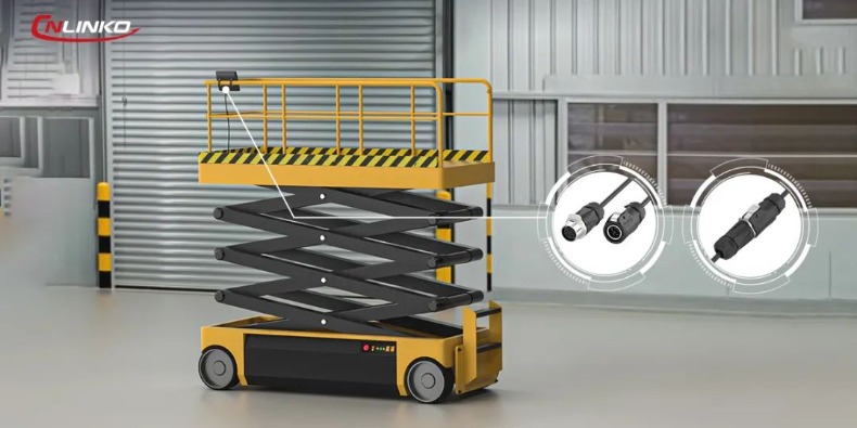 电动升降平台作业场景多为户外、工地、仓库等,面临水液,特别是突降暴雨等影响,如果防水不达标,极有可能出现进水导致短路或烧坏等问题。上述方案产品具备IP68/IPX9K级防水性能,可为电动升降平台电气连接提供更高防护。