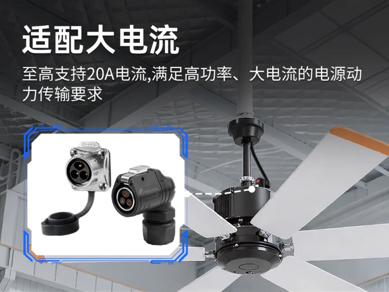 工业级风扇散热器功率较大,通常需要大电流输入支持。所用电源连接器要能满足大电流持续稳定连接,且产热少,温升不宜过高。