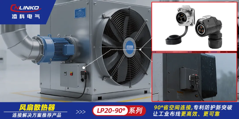 风扇散热器用工业级防水连接器要求具备优异环境性能:1、能耐受高温,才能保障散热器稳定运行;2、要能耐受冷却液、切削液等腐蚀环境;3、最重要的是要具备IP65以上防护等级,以抵御车间可能存在的水液与粉尘侵袭。