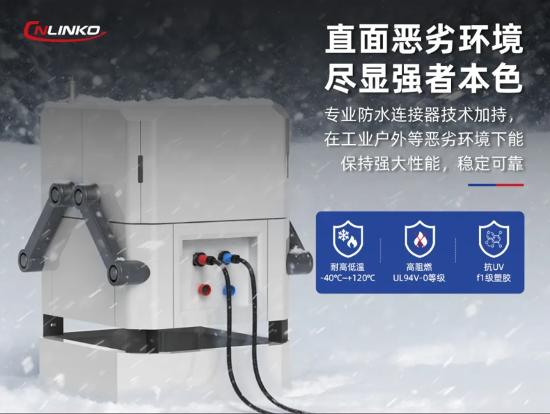 焊接作业过程中会存在焊花飞溅,同时也会释放大量热量造成现场局部温度过高,这也非常考验连接器的耐高温及防火阻燃能力。凌科DL28连接器耐环境温度高达120℃,且阻燃等级为UL94 V-0级,完全能满足焊接设备作业过程中对连接器耐温及防火阻燃安全要求。
