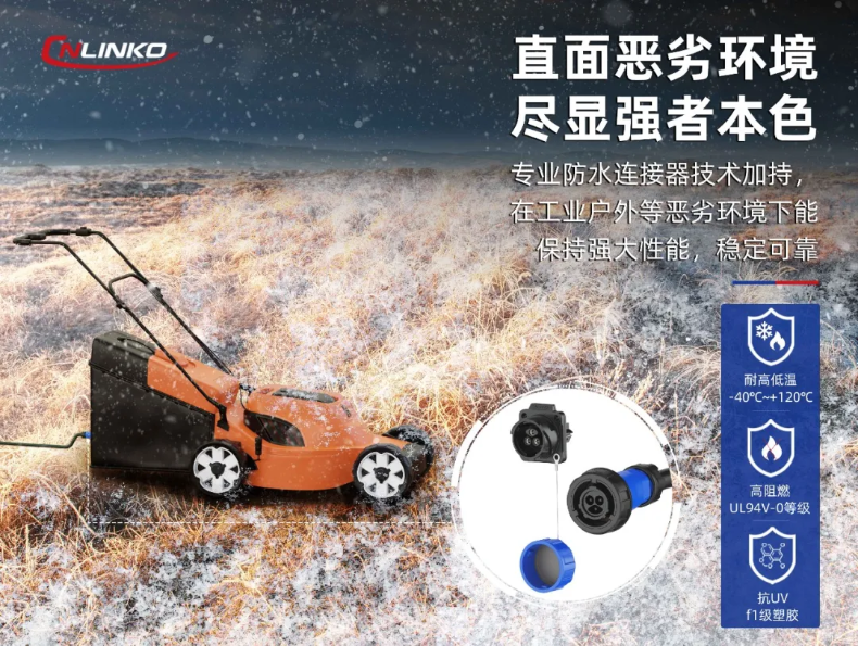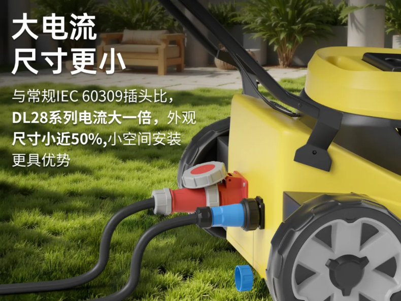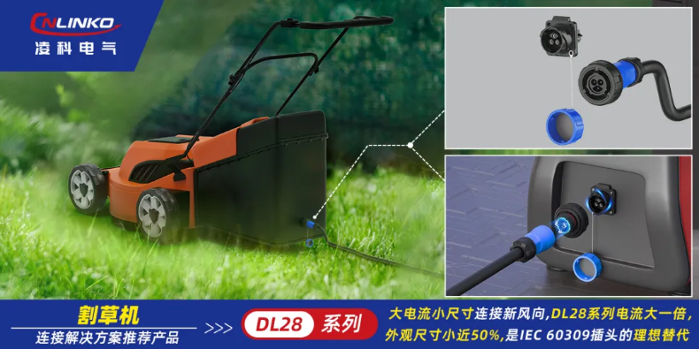 无论是商用草坪还是家用庭院,高效草坪维护日益依赖割草机。户外或室内等多场景充电环境下,电气连接安全至关重要。凌科DL28连接器凭借多重技术优势,正逐步替代传统IEC60309插头,成为割草机充电连接的理想解决方案。