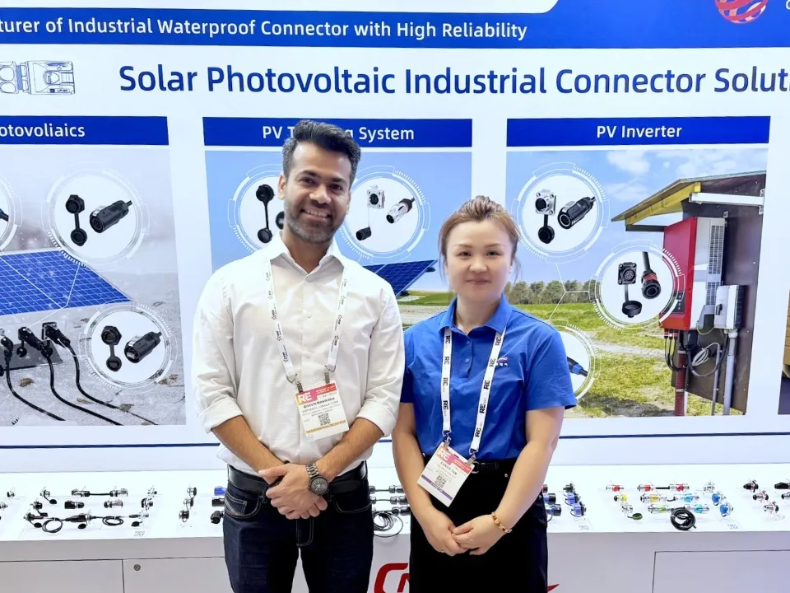本次展会聚焦太阳能与储能领域,凌科亦是重点展列了面向光伏系统、逆变器、移动户外储能等领域的工业级连接器方案。如: