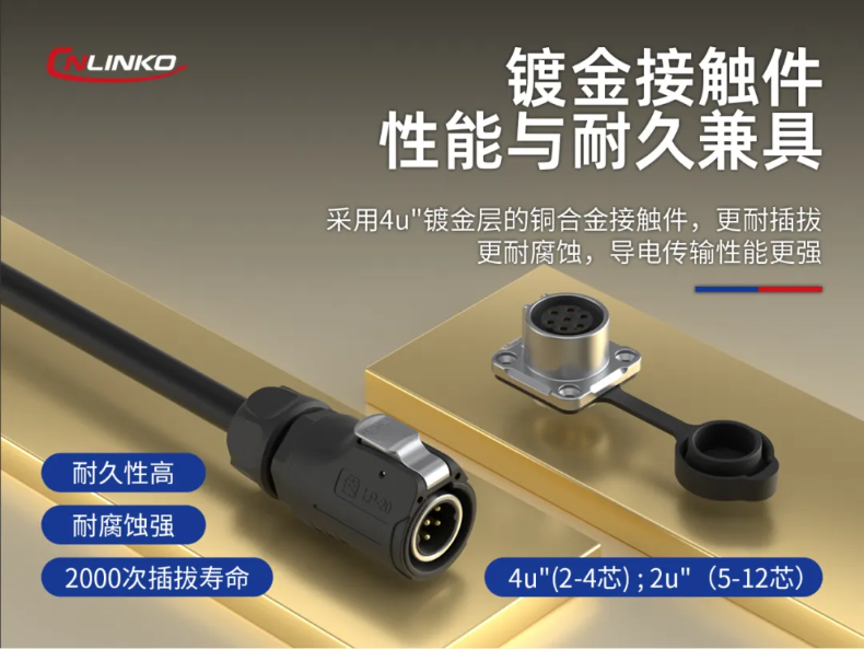 凌科LP20型气密性连接器,采用了按扣直插式连接方式,这一设计让断连连接器变得极简极快。单手插拔,简单好用,快如风驰。
