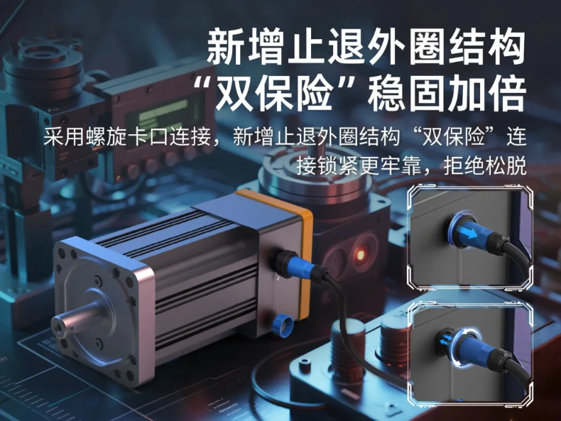 伺服电机在高频启停、换向及负载突变时会产生持续高强机械振动,传统单一锁定方式的连接器易因共振导致端子磨损,引发信号失真或断电风险。