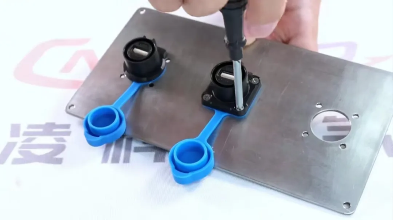 该款产品的插座安装相对简单,只需将其安装固牢在安装面板上即可,其中四孔插座需要用到工具螺丝刀。要注意的是安装面板板厚最大为3.0 mm,拧紧的扭力值保持在1.5±0.1N·m。