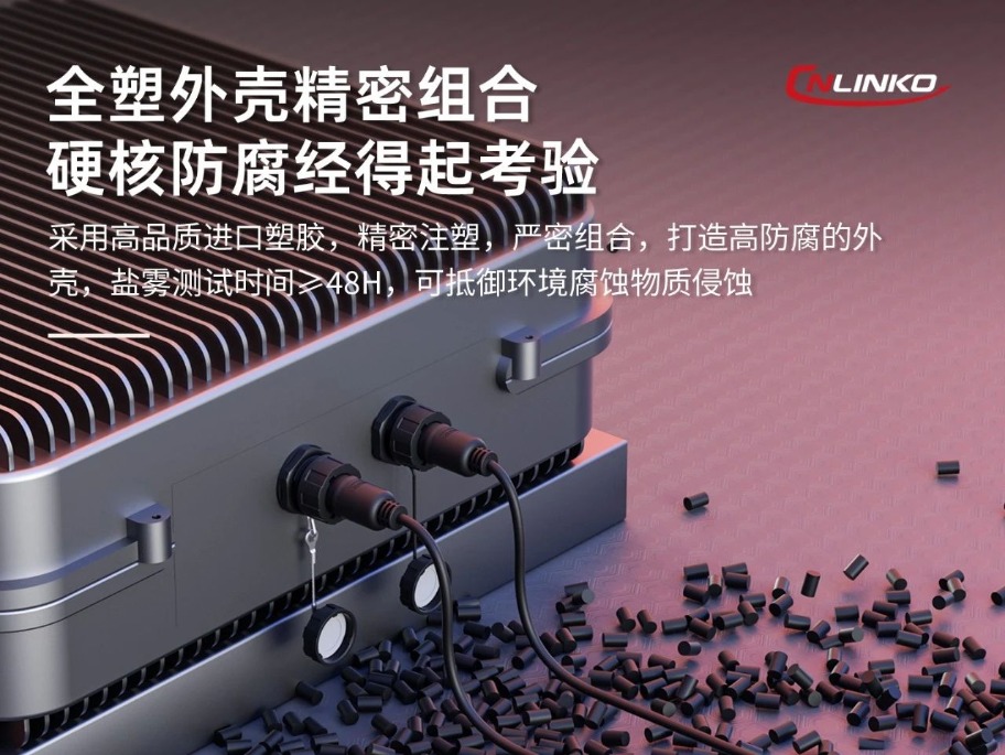 这款数据连接器按照工业级标准设计与制造,并基于凌科的精湛工艺与严格品控,使得其呈现出更为亮眼的高性能和环境适应性,如耐高低温:-25℃ +85℃ ,f1级塑胶抗UV, 阻燃UL94V-0级等,能保障在复杂和恶劣应用场景下保持稳定如一和流畅可靠的数据连接。